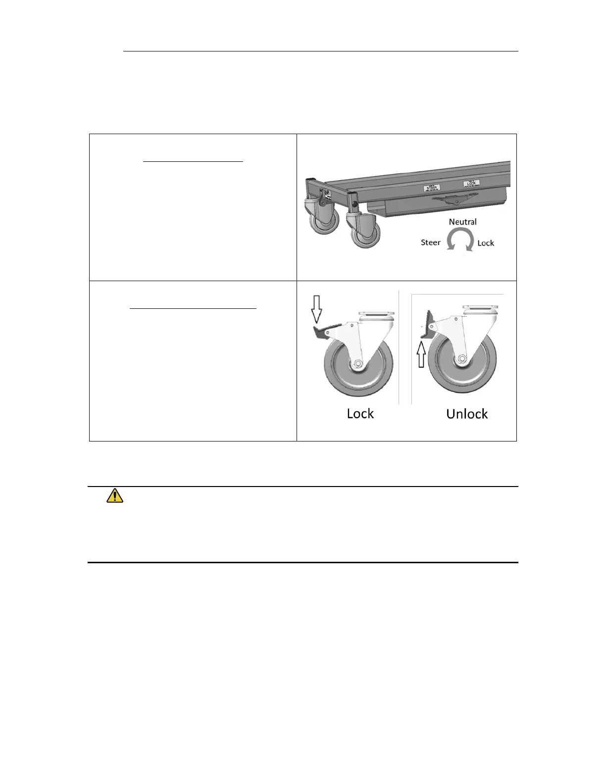 caster. Push down to lock, lift to unlock.
