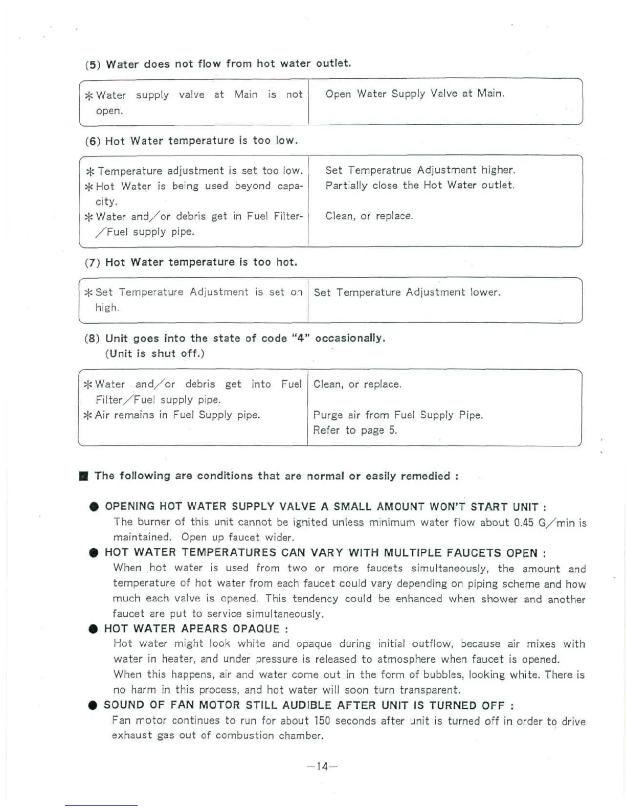 SMALL AMOUNT WON'T START UNIT