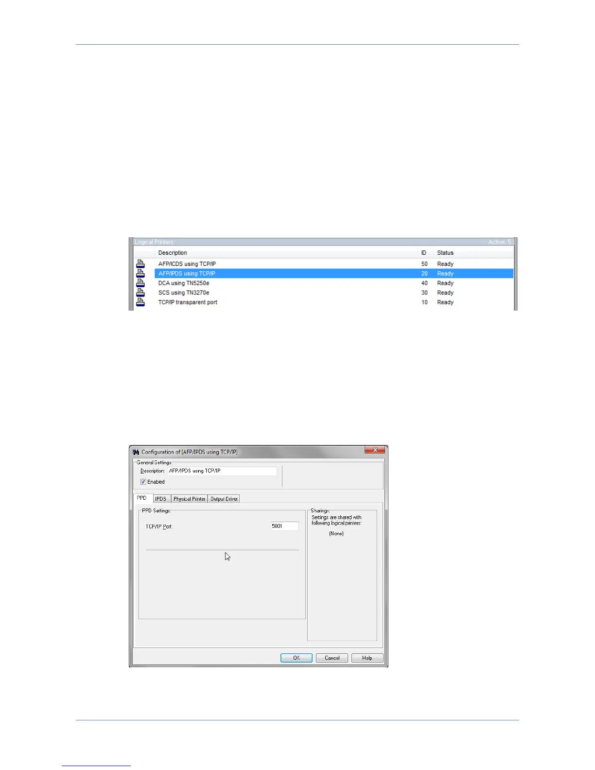 It is possible to configure IPDS, ICDS, DCA, SCS and TCP/IP port 9100 print,