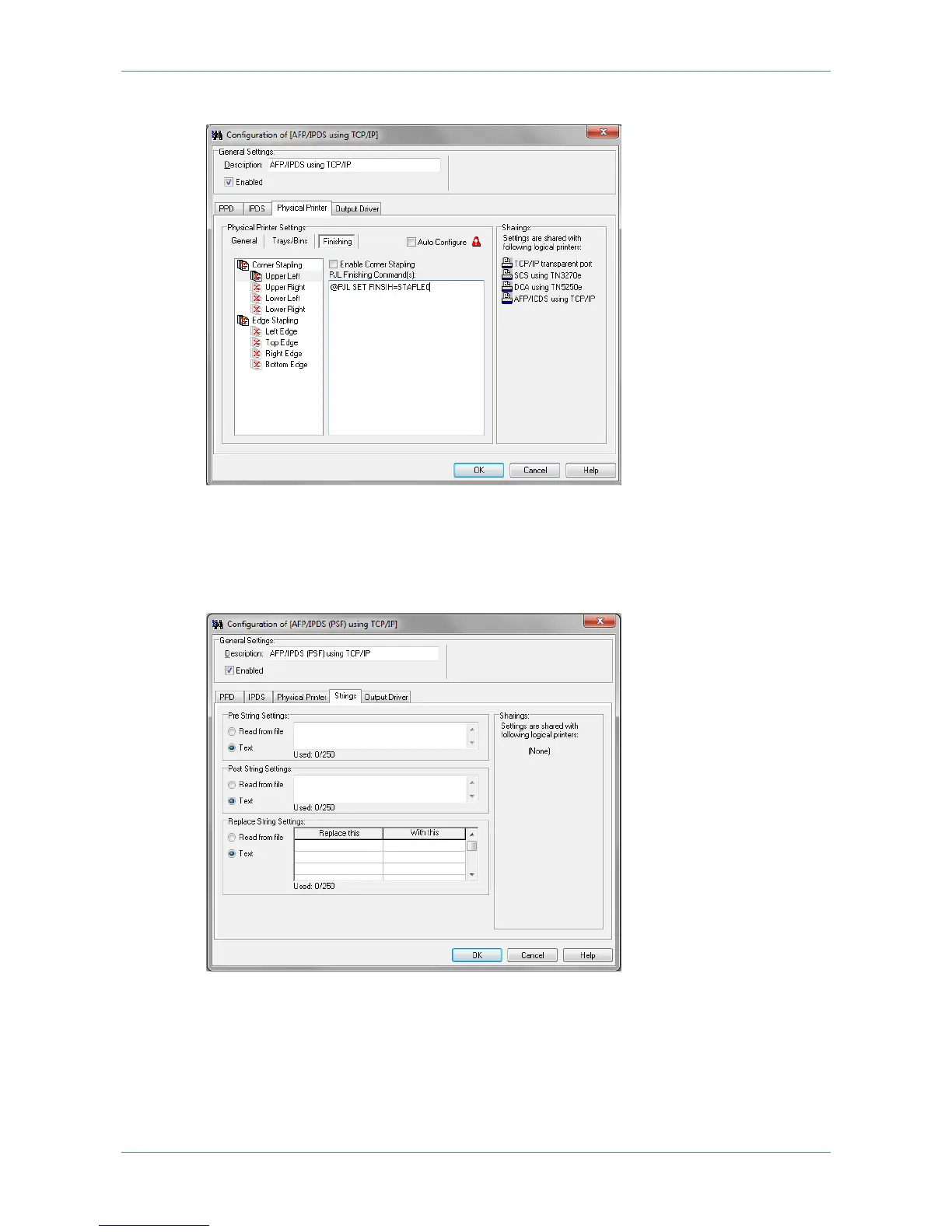 printer (Replace String Settings). Strings can either be typed in directly, or