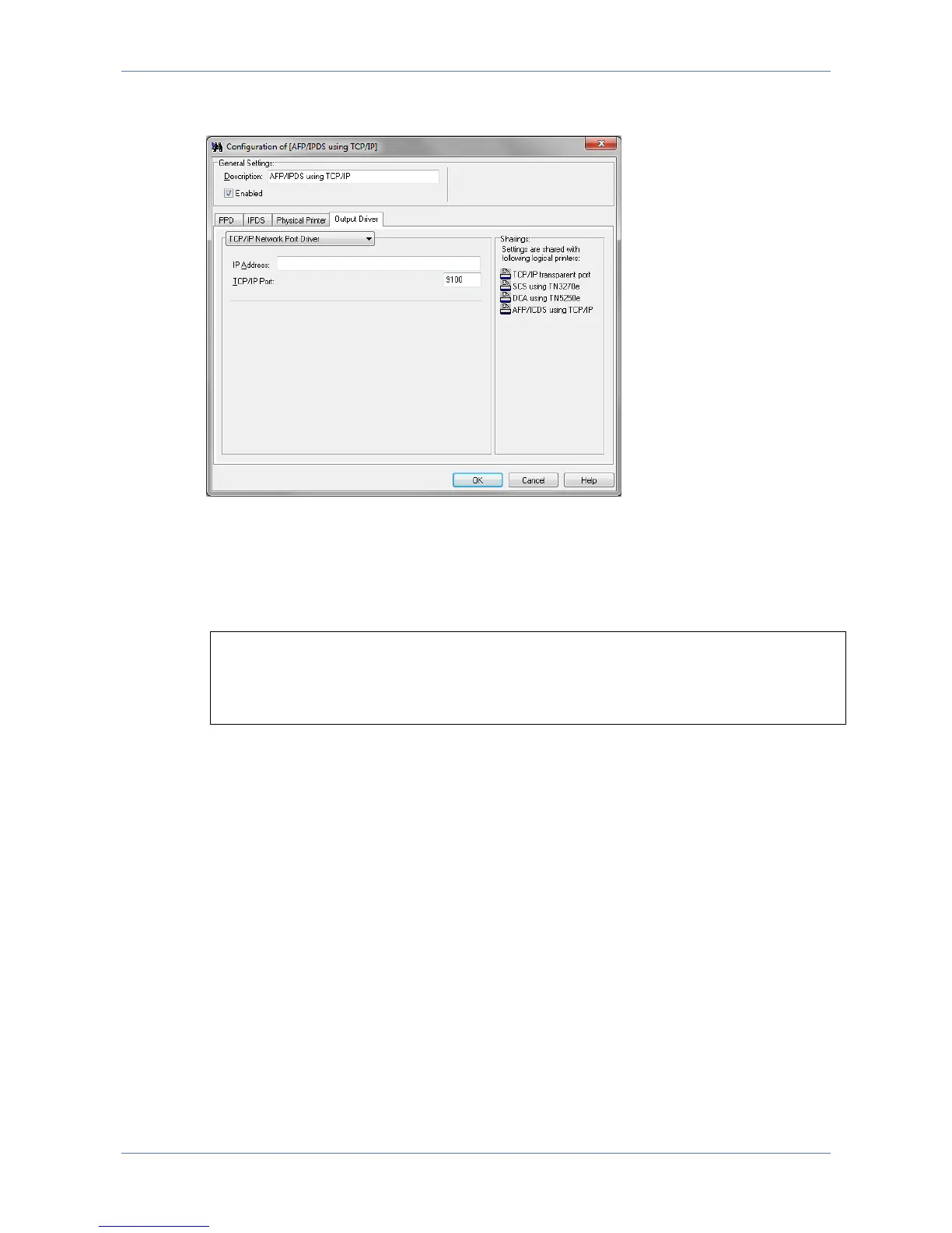 setup, the data is send to a network printer. “TCP/IP Network port driver”. The IP