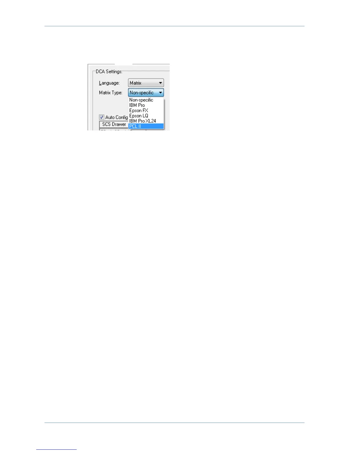 Select between Matrix printer type: IBM Pro, IBM Pro XL 24, Epson FX, Epson