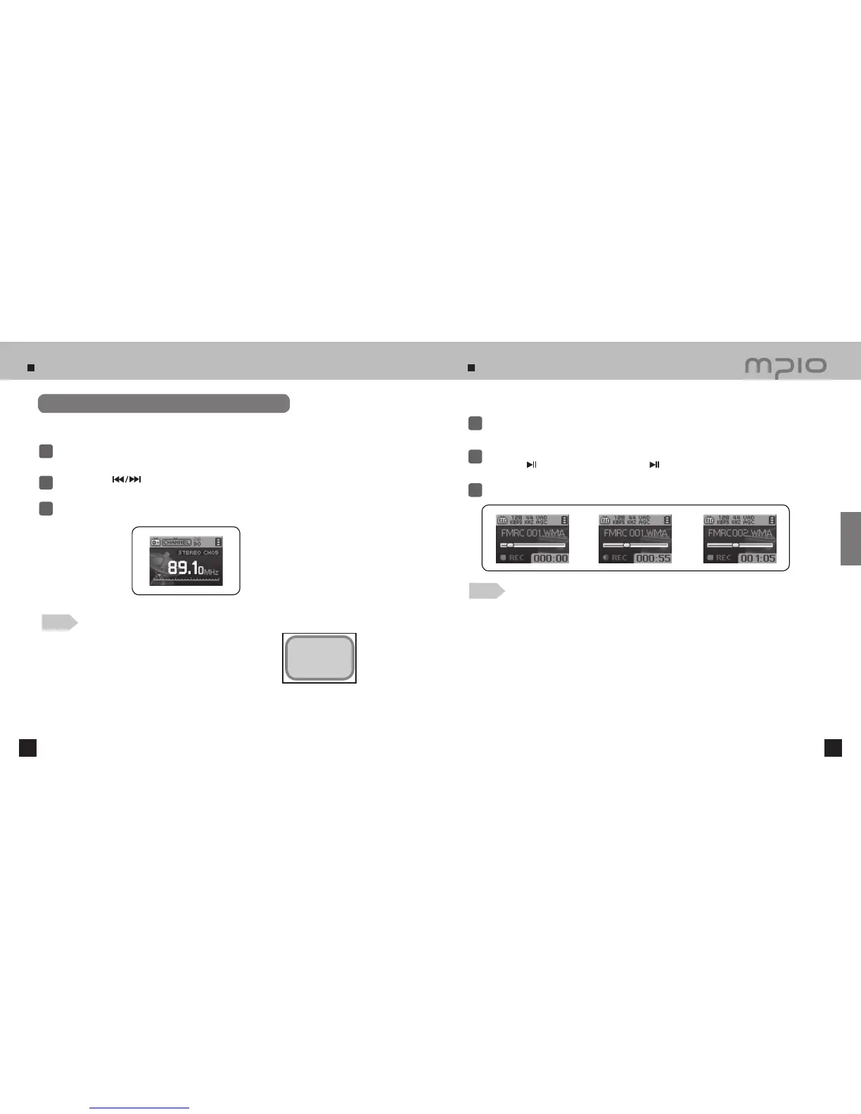 The recorded files will be saved in order of FMRC001, FMRC002, etc. The recorded files