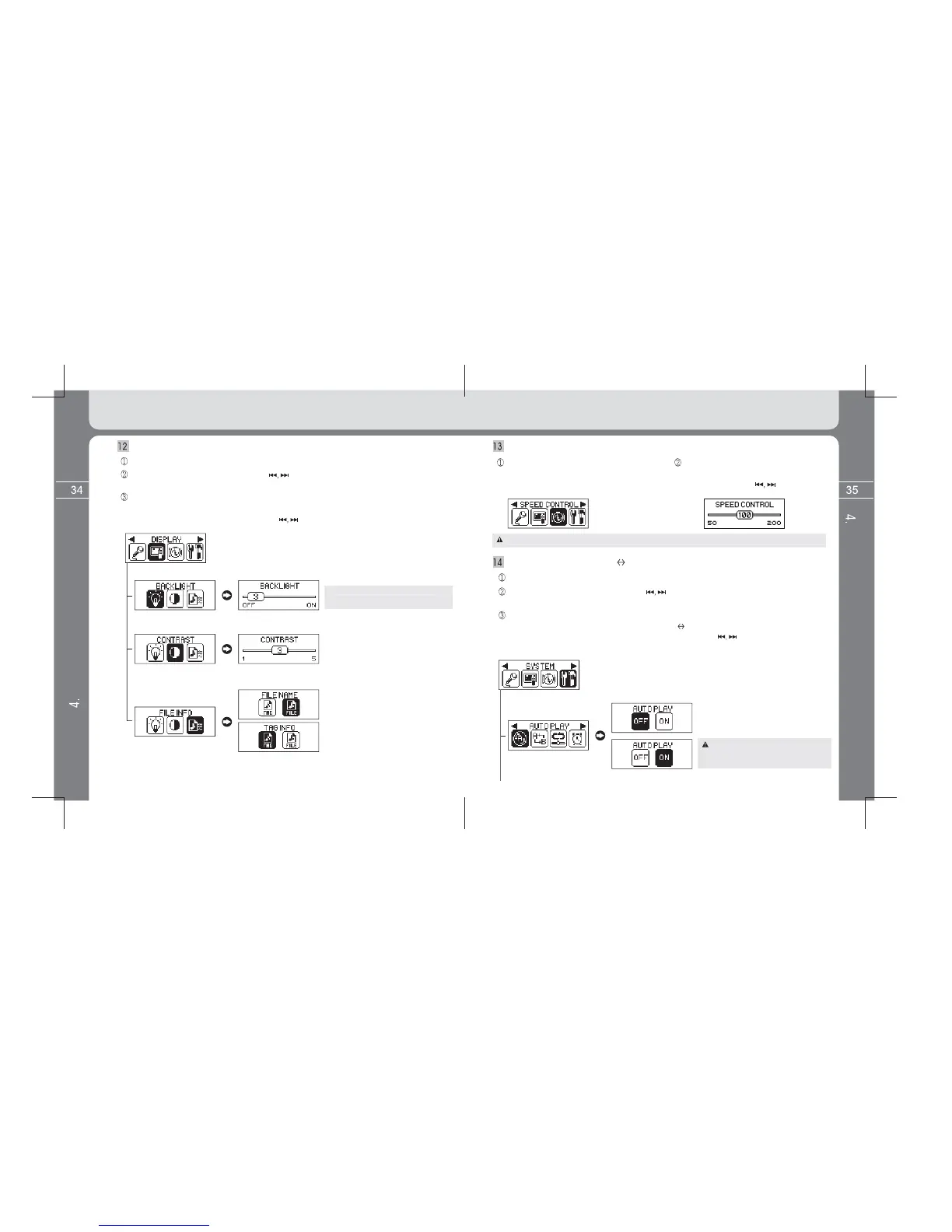 Setup DISPLAY (BACKLIGHT, CONTRAST, FILE INFO)
