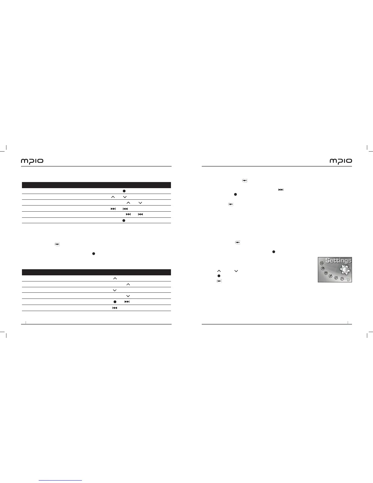 • Select [Settings] and press the Select ( ) button once to go into Settings