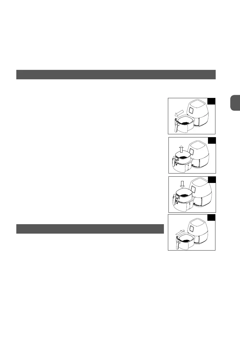 The Fitfryer uses hot air. Do not fill the bowl (7) with oil, frying grease