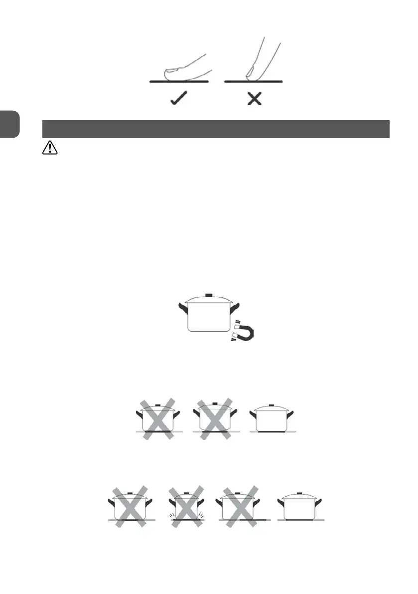 Należy używać naczyń o gładkim spodzie. Naczynie stawia się równo na powierzchni płyty