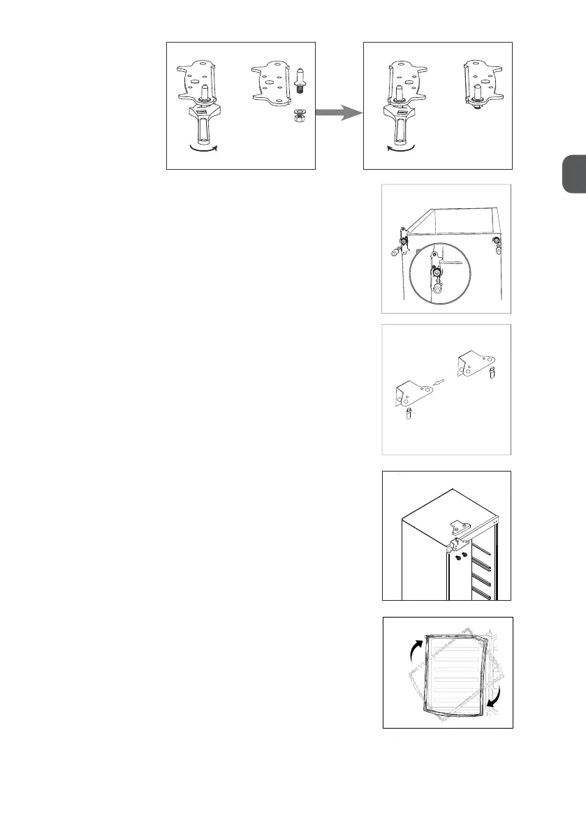 8. Postaw urządzenie. Załóż drzwi z powrotem za pomocą dolnego zawiasu.