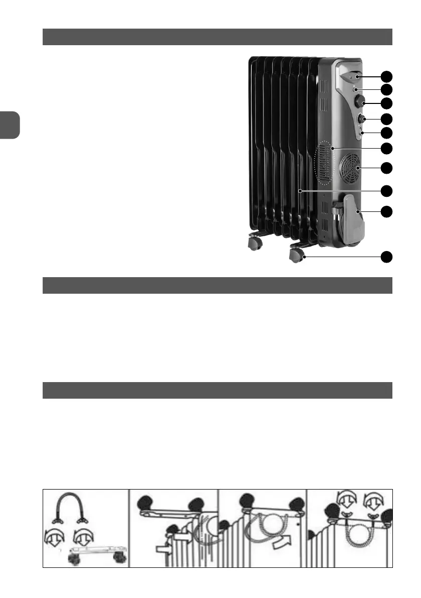 4. Zamontuj kółka jezdne grzejnika według poniższego opisu.