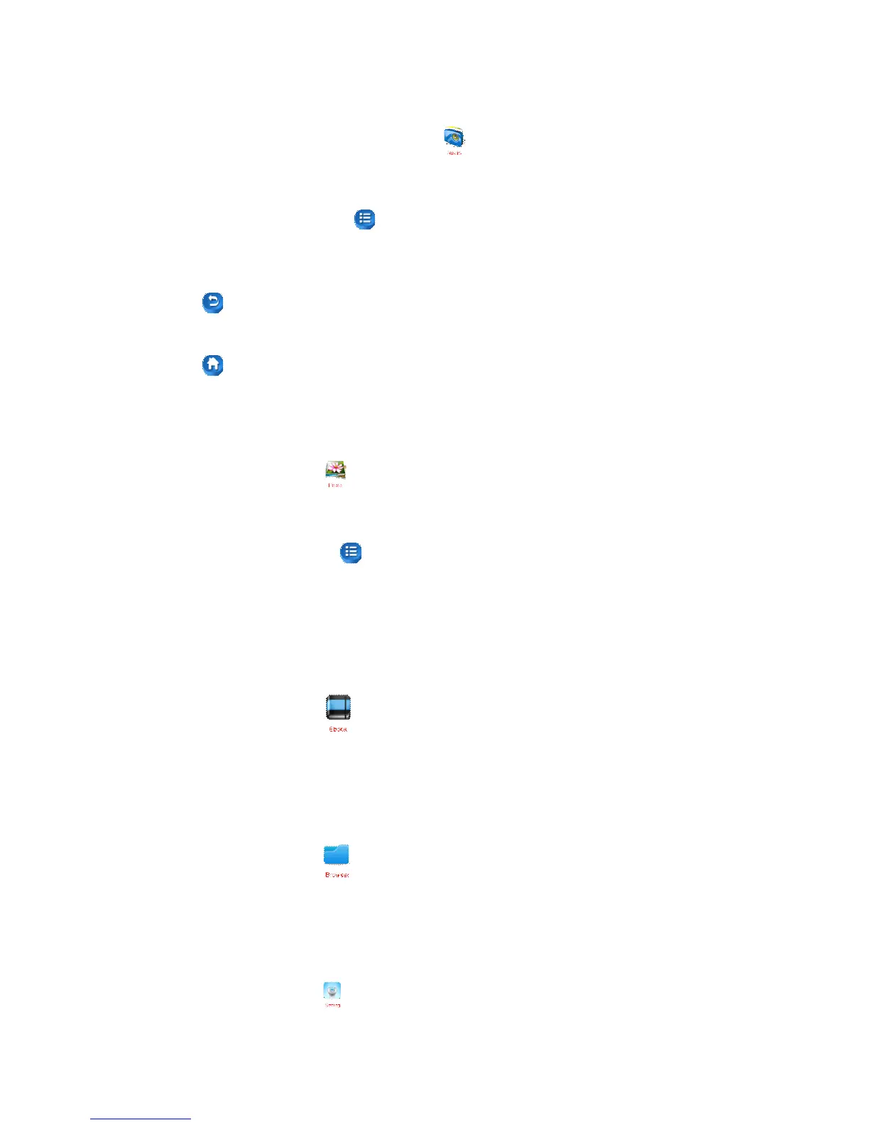 Under main menu, press to Ebook submenu including: Dir list and