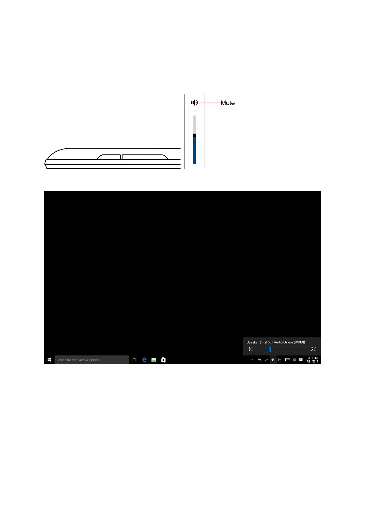Press the volume key on top of PC and set volume