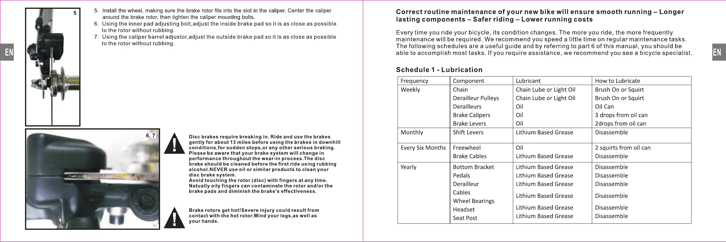 MPMan EB8 - Schedule 1 - Lubrication