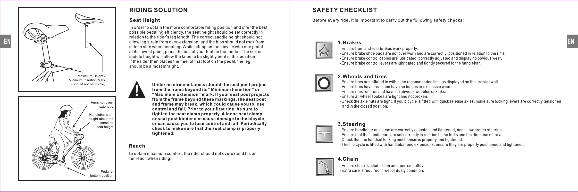 MPMan EB8 - Riding Solution; Seat Height; Reach; Safety Checklist