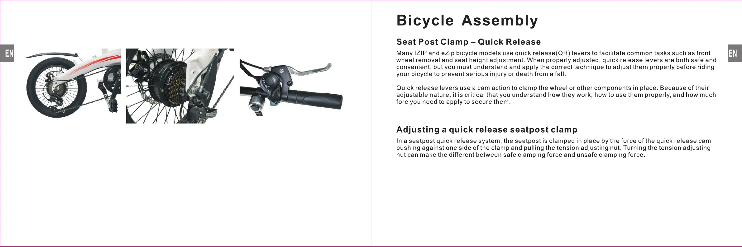 MPMan EB8 - SHIMANO 7-Gear Thumb Shifter and Flywheel; Bicycle Assembly; Seat Post Clamp - Quick Release; Adjusting a quick release seatpost clamp
