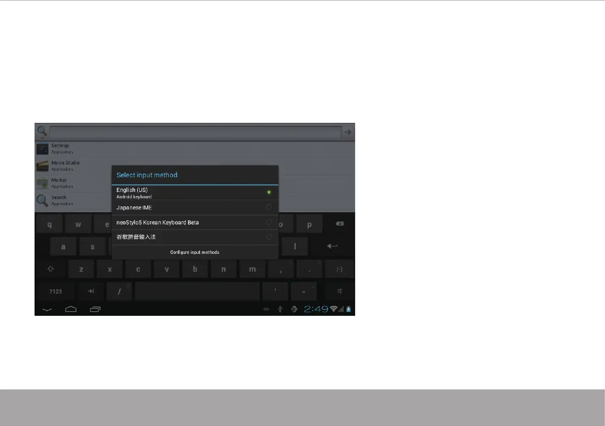 If your device was installed with other more input method, long press setting icon of keyboard,