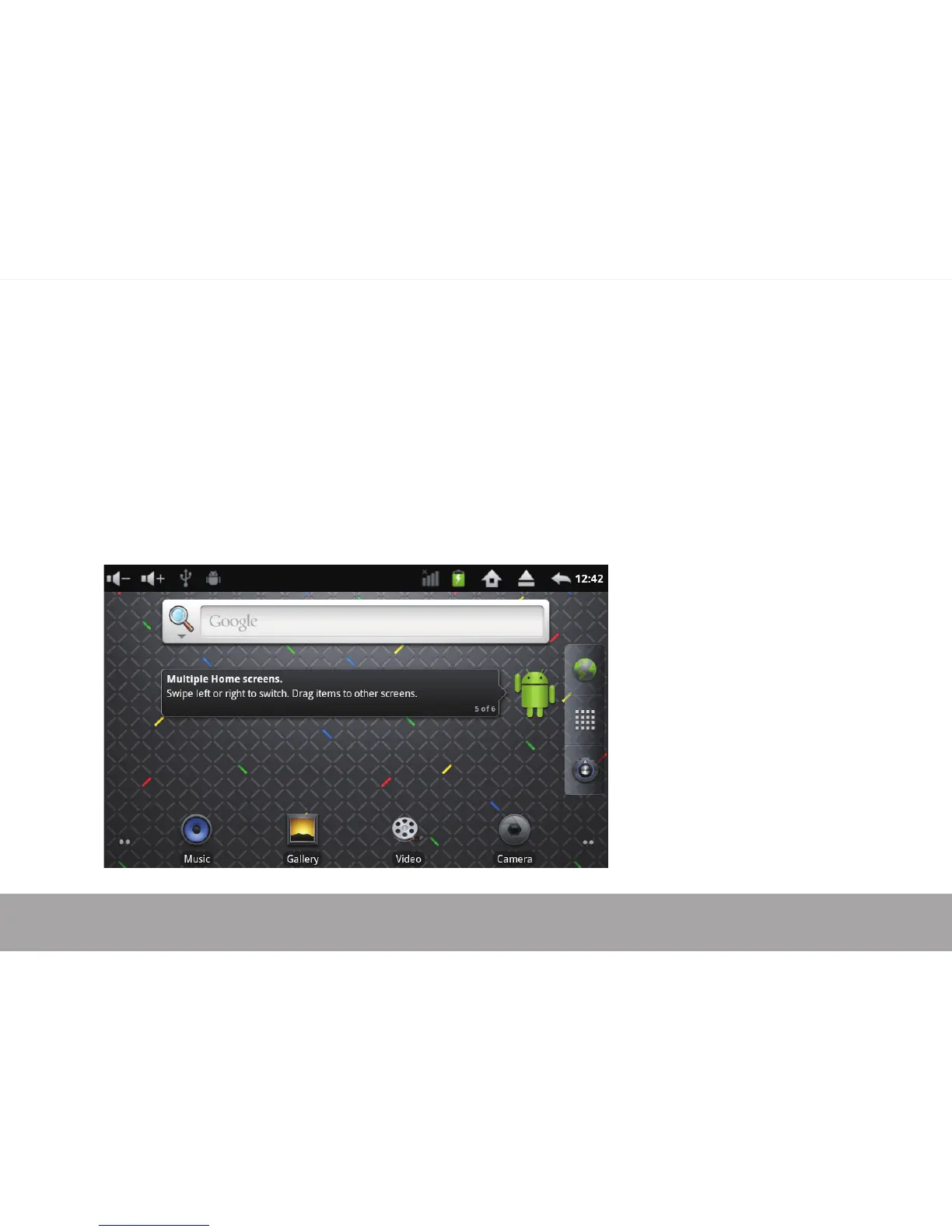 After turning on the device, desktop displays with shortcut icons and arrow panel at the right side