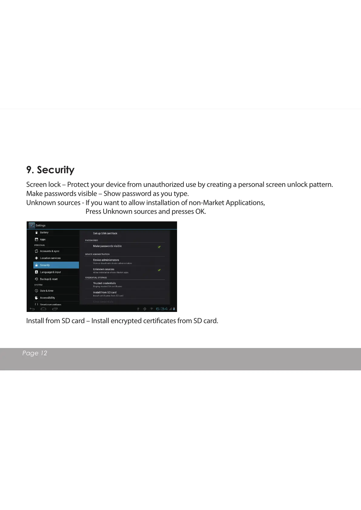 Install from SD card Install encrypted certicates from SD card.