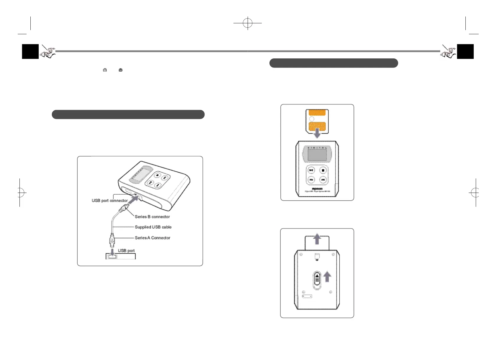Before inserting a SmartMedia card, be sure to turn off the power of the player