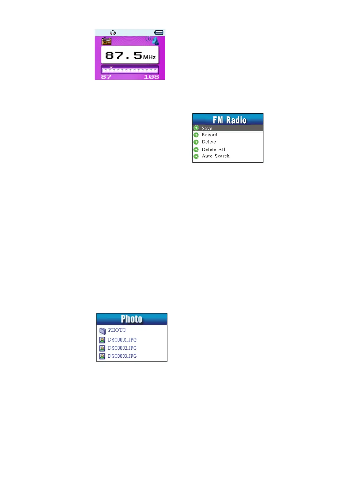 Local folder, Playback set (Manual play, autoplay) , delete file ,delete all, exit.