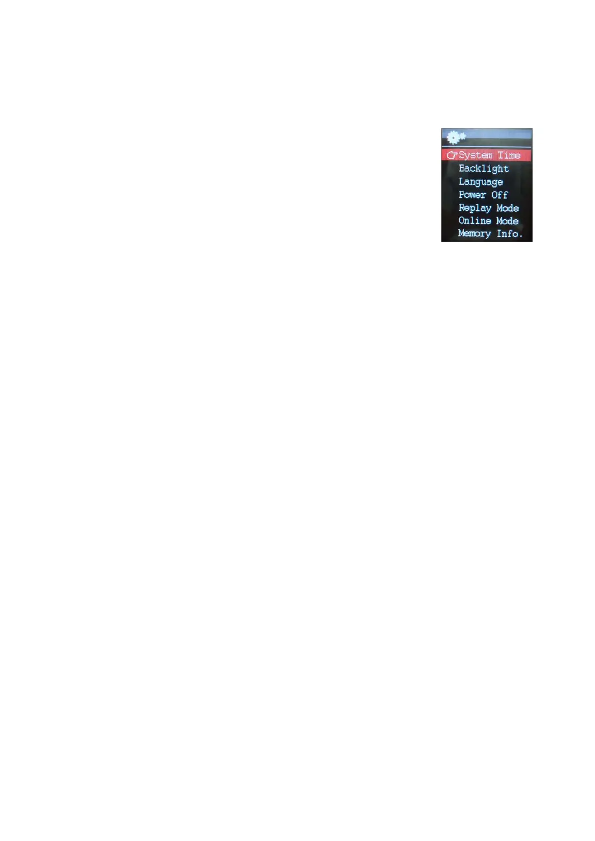 The SETTING option allows to access to MP3 Player setup system. To access at system setup please follow