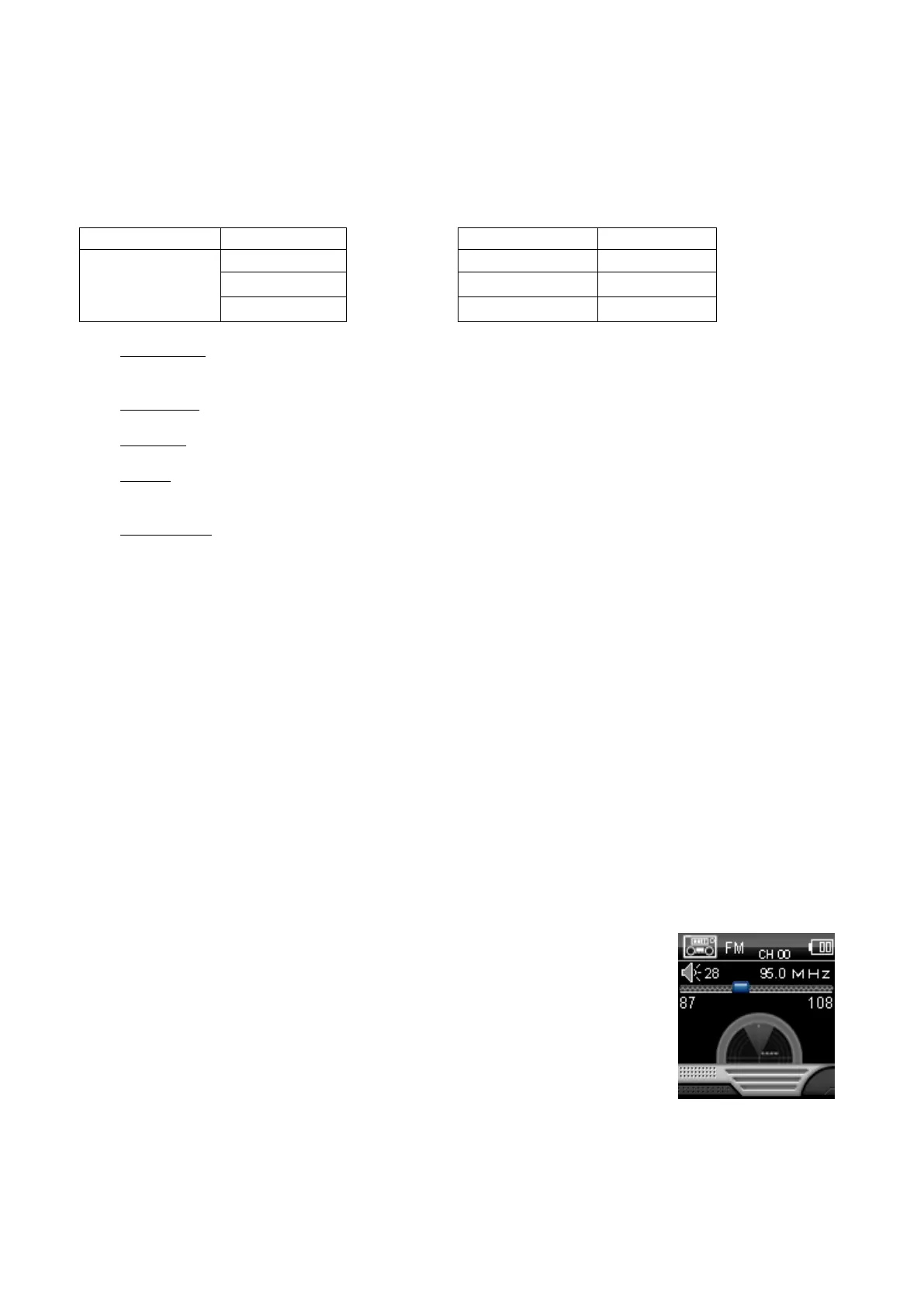 When the FM Radio mode is activated it is possible to hear radio programs.