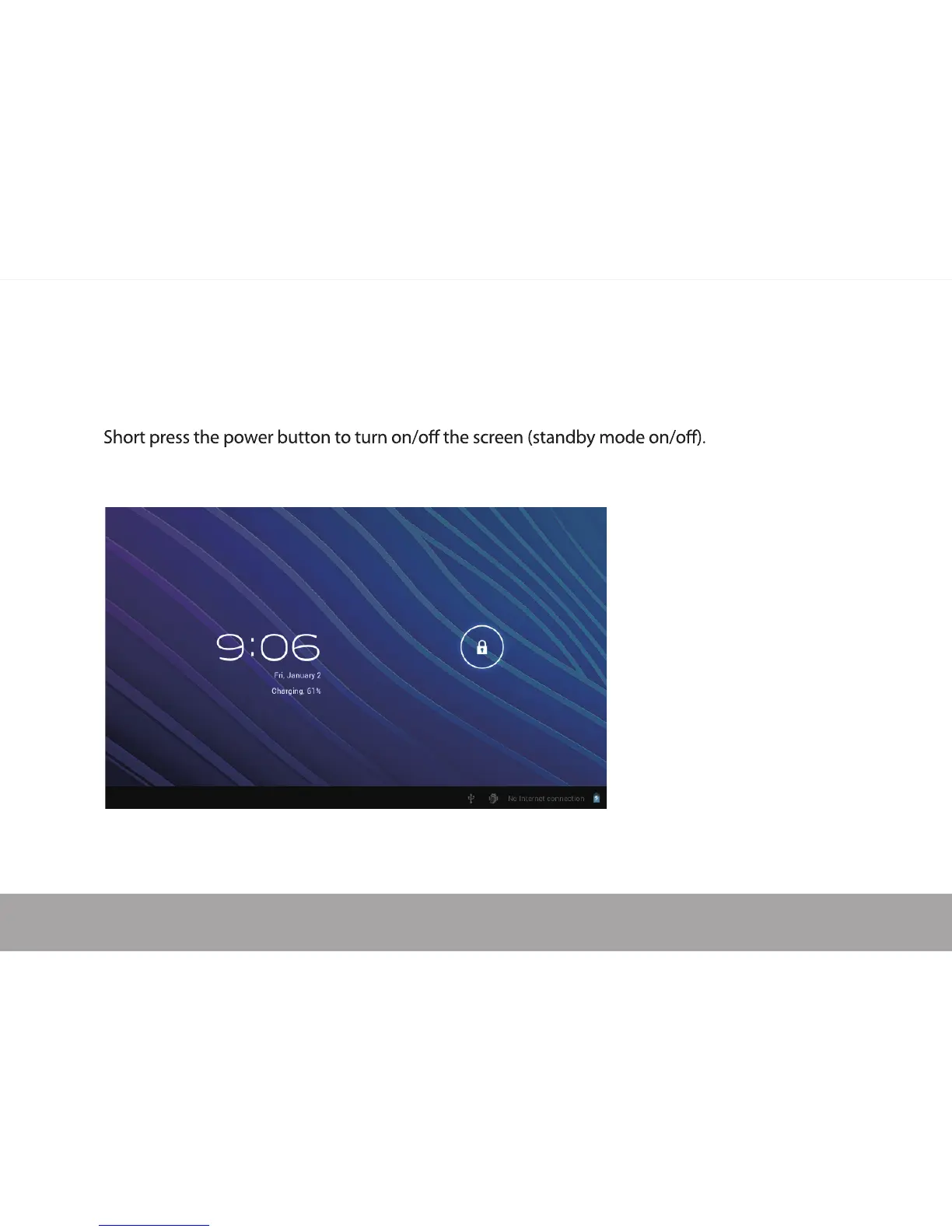 After standby mode o, slide the lock icon in order to unlock the screen.