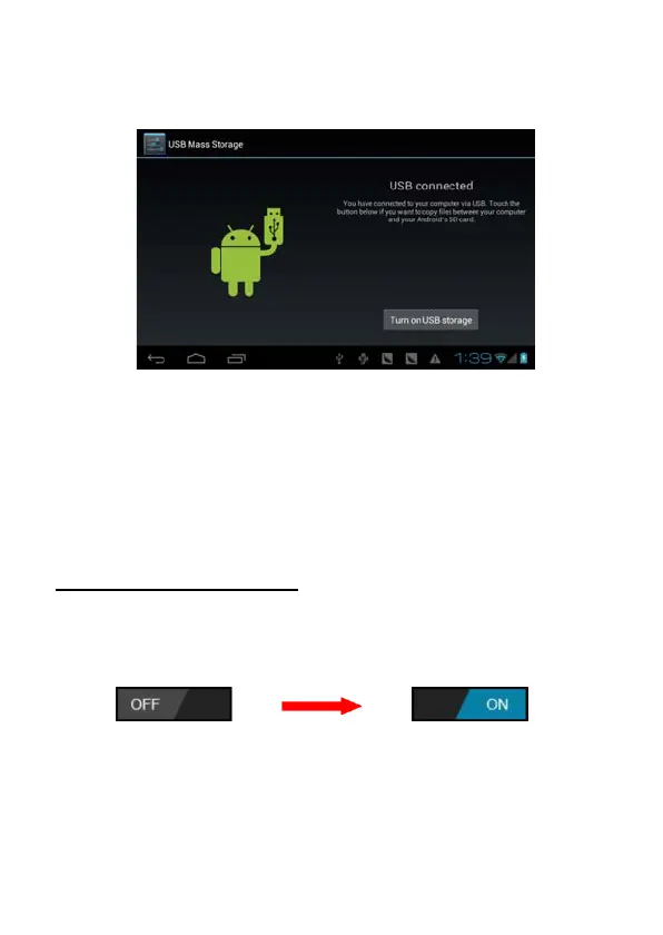 2 Press USB connected on the top bar, then click Turn on USB storage,