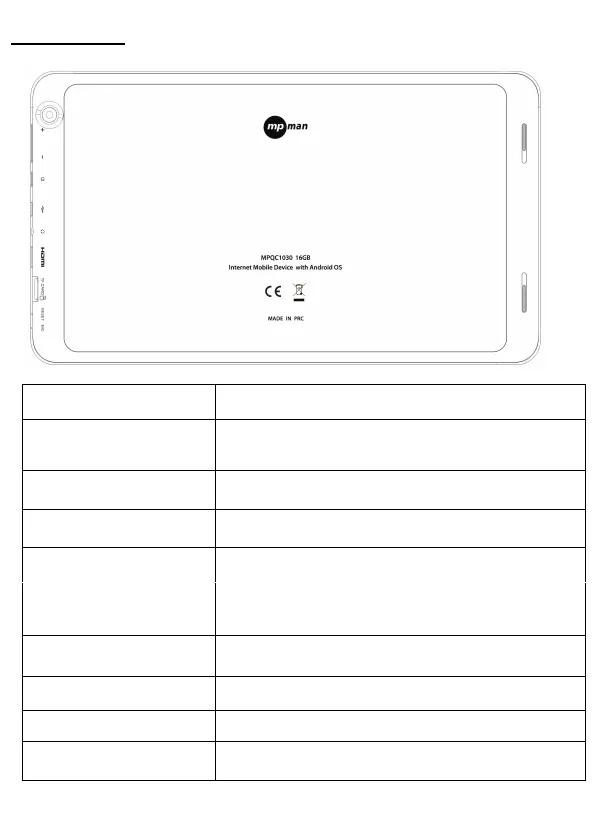 Keep pressed to turn on/off the tablet; shortly