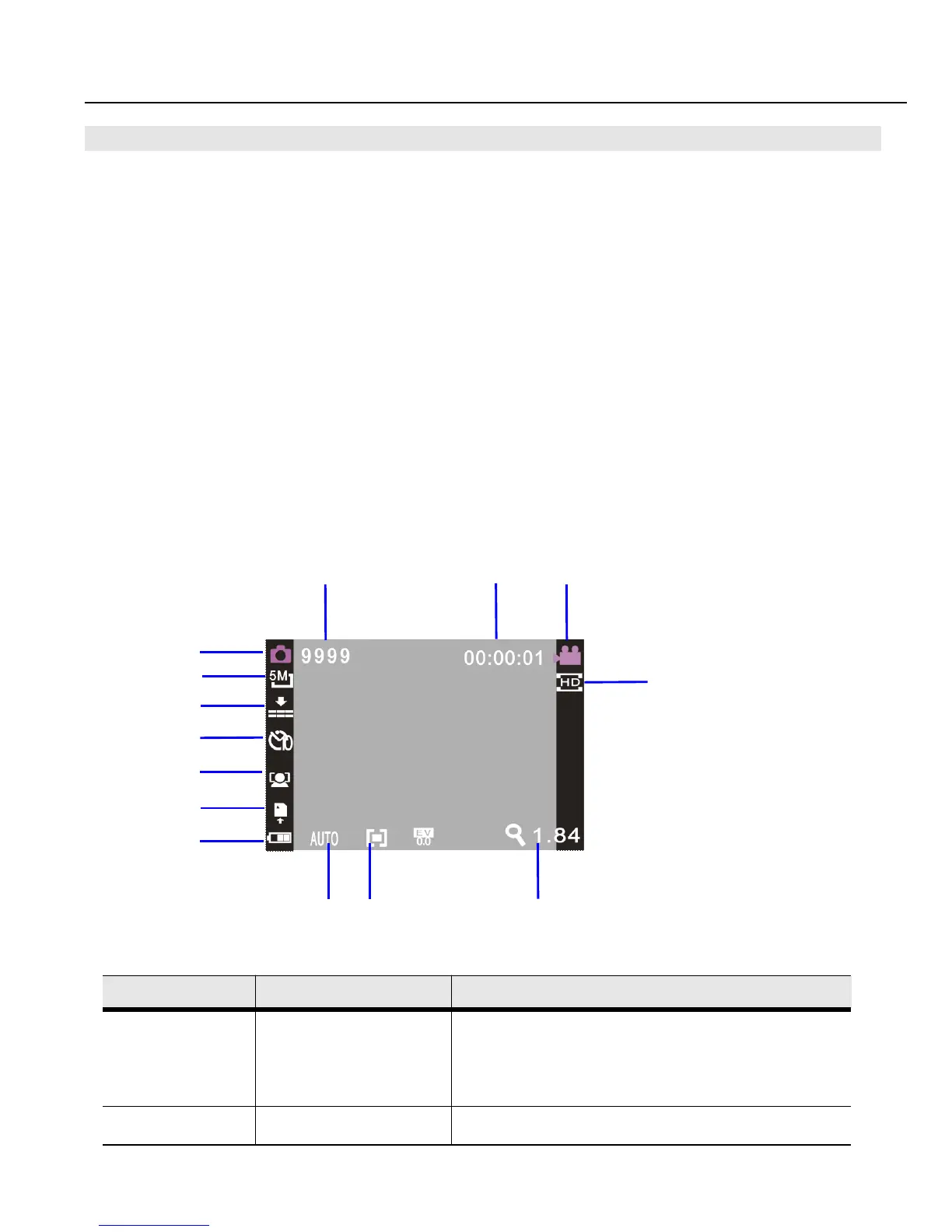 Indicate that under picture taking mode,