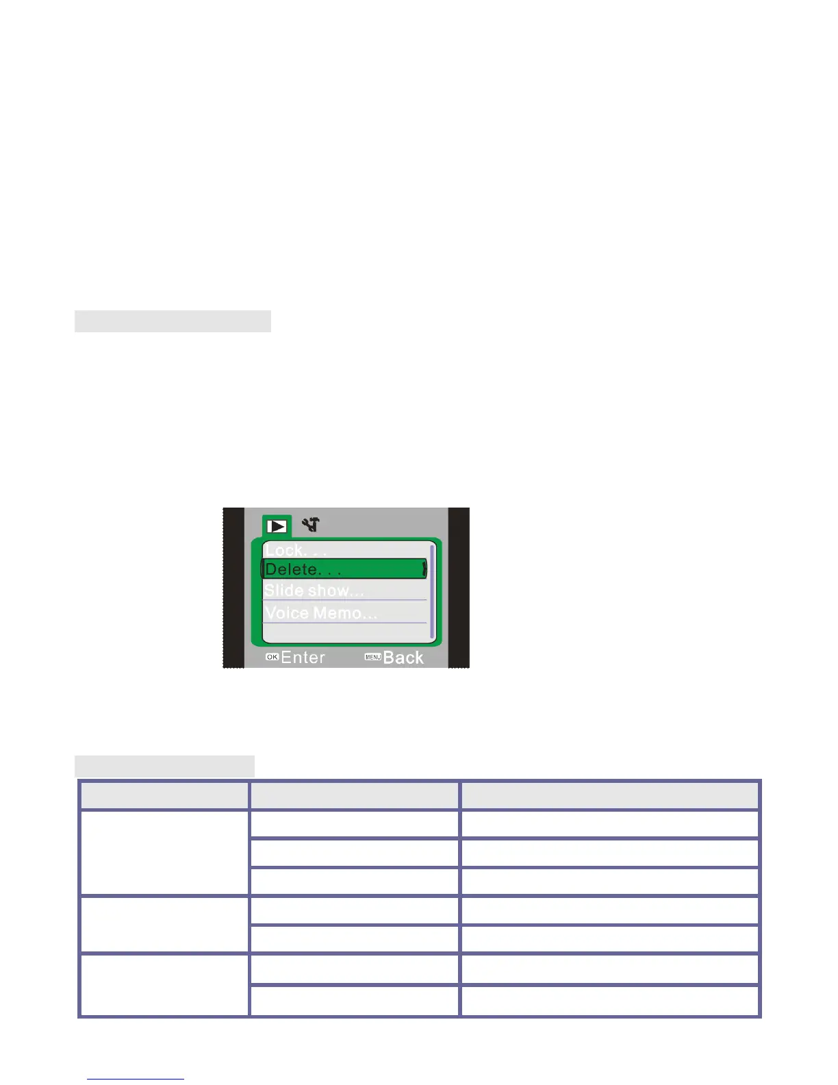 Under playback mode, press the left key to select previous file or press the right key to