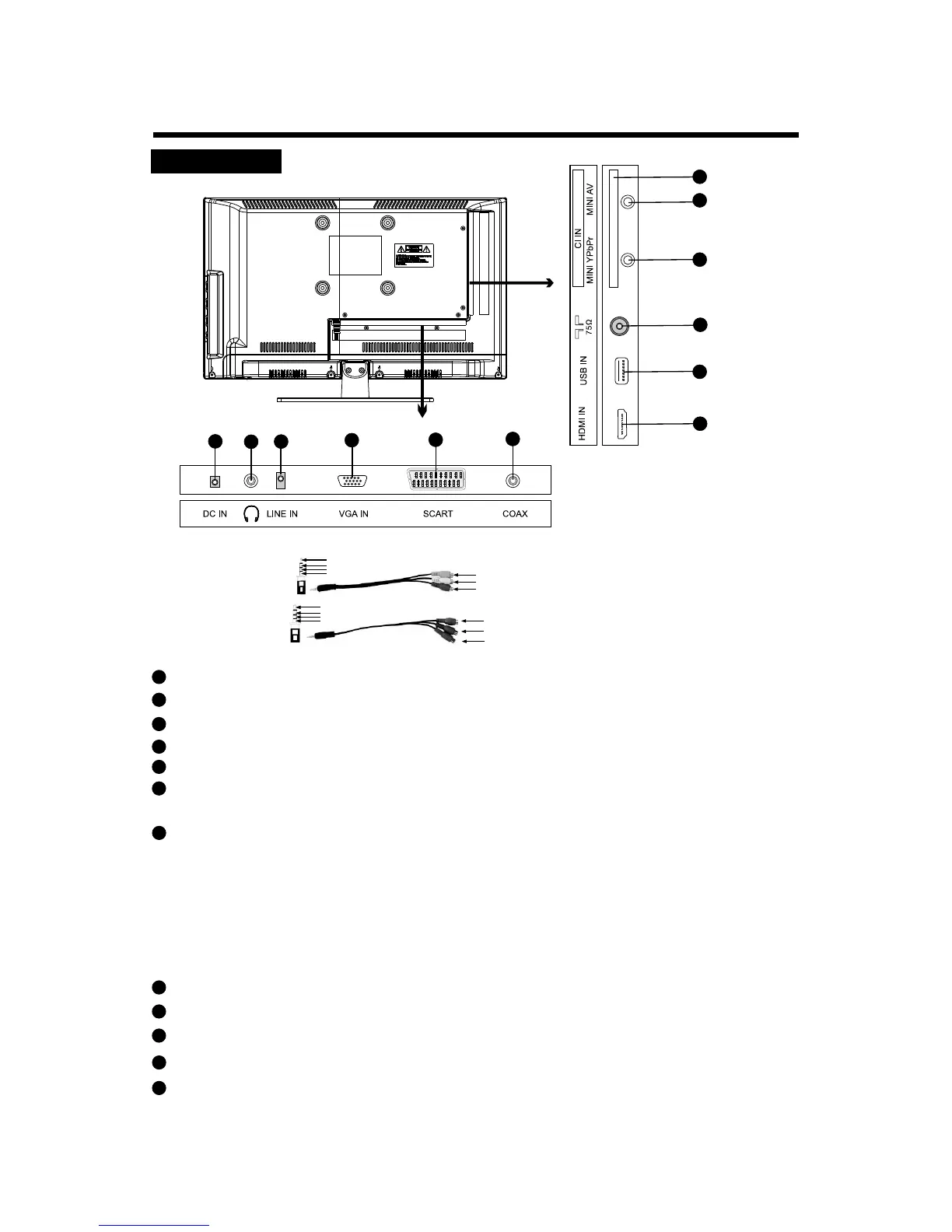 RF Input Socket: Connect antenna or cable 75 ohm coaxial to receive TV signal.