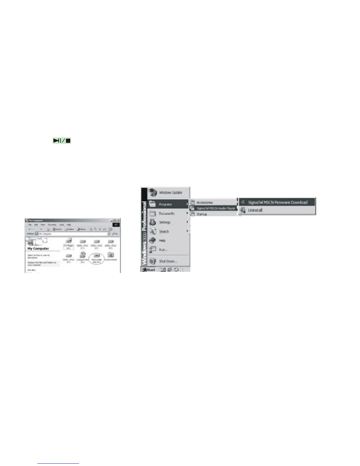 C. Steps: Start>Program>SigmaTel MSCN Audio Player>SigmaTel MSCN Firmware