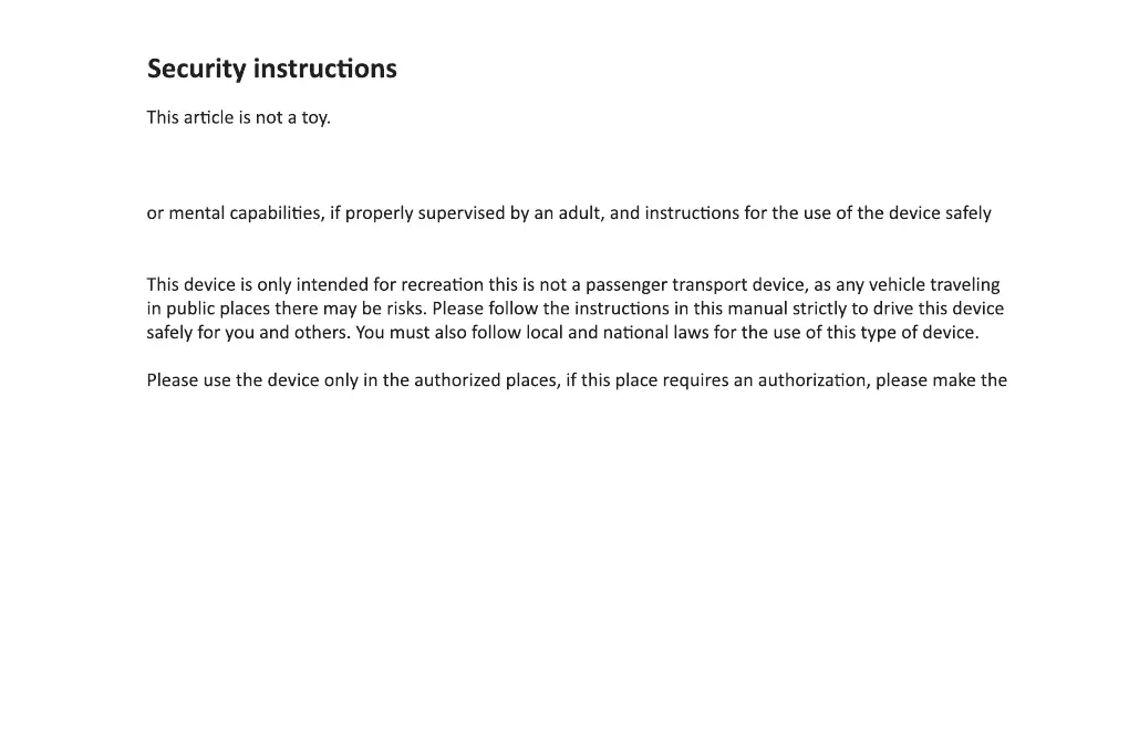 Please respect the pedestrians as you pilot the device. Avoid frightening pedestrians,