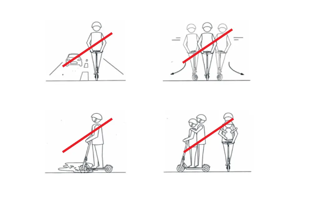 Rijd niet door water, modder of sneeuw. Rijd niet samen met een kind op de step.