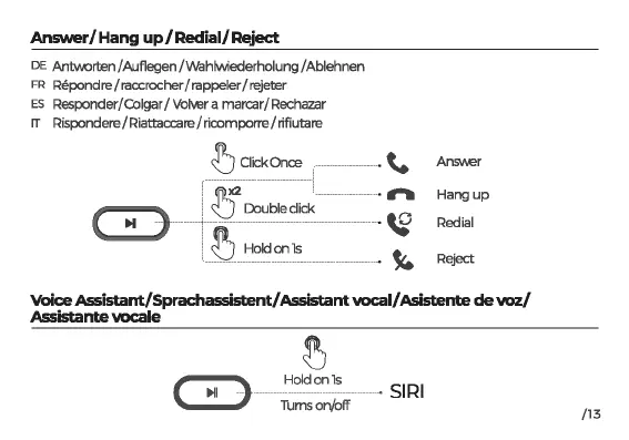 Answer/Hang up/Redial/Reject