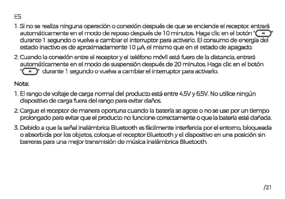 el receptor Bluetooth y el dispositivo en una posici6n sin