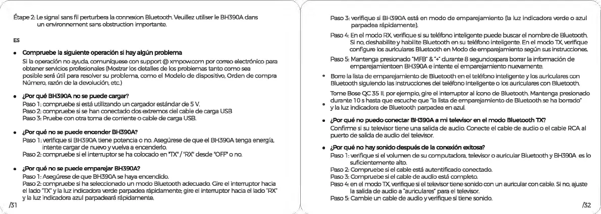 signal sans fil perturbera la connexion Bluetooth. Veuillez utiliser le BH390A dans