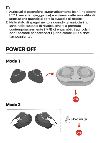 Mpow BH437A - POWER OFF; Mode 1: Charging Case Power Off; Mode 2: Manual Power Off