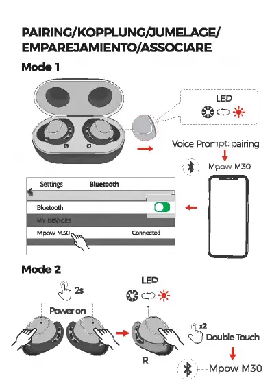 Mpow BH437A - PAIRING; Mode 1: Automatic Pairing; Mode 2: Manual Pairing
