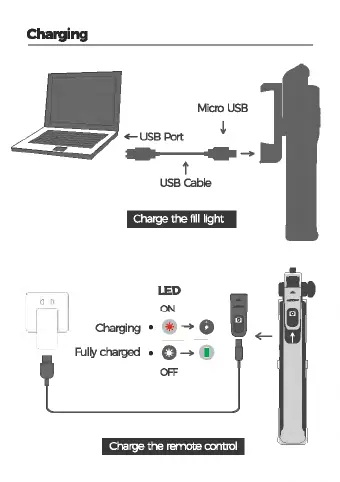 Mpow ISNAP X1 - Charging the Device; Charging Fill Light and Remote