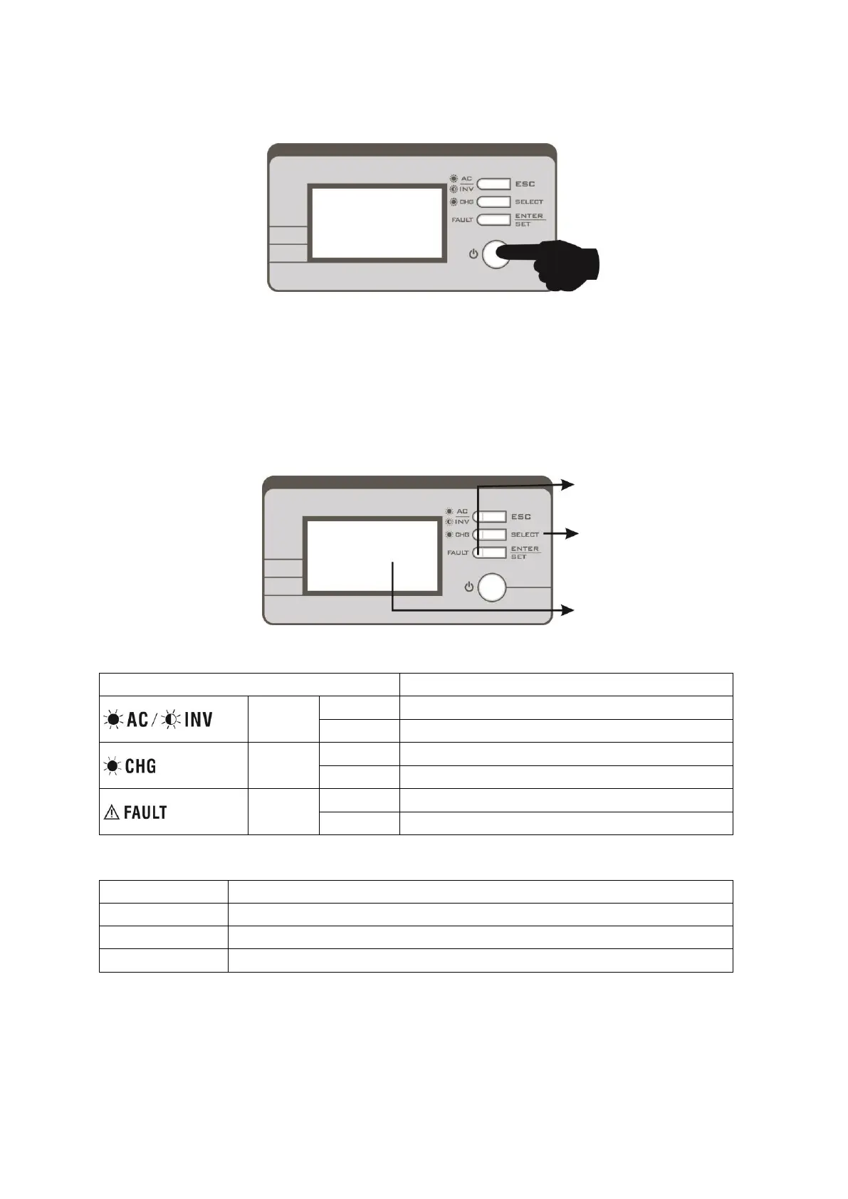 The operation and display panel, shown in below chart, is on the front panel of the inverter. It includes