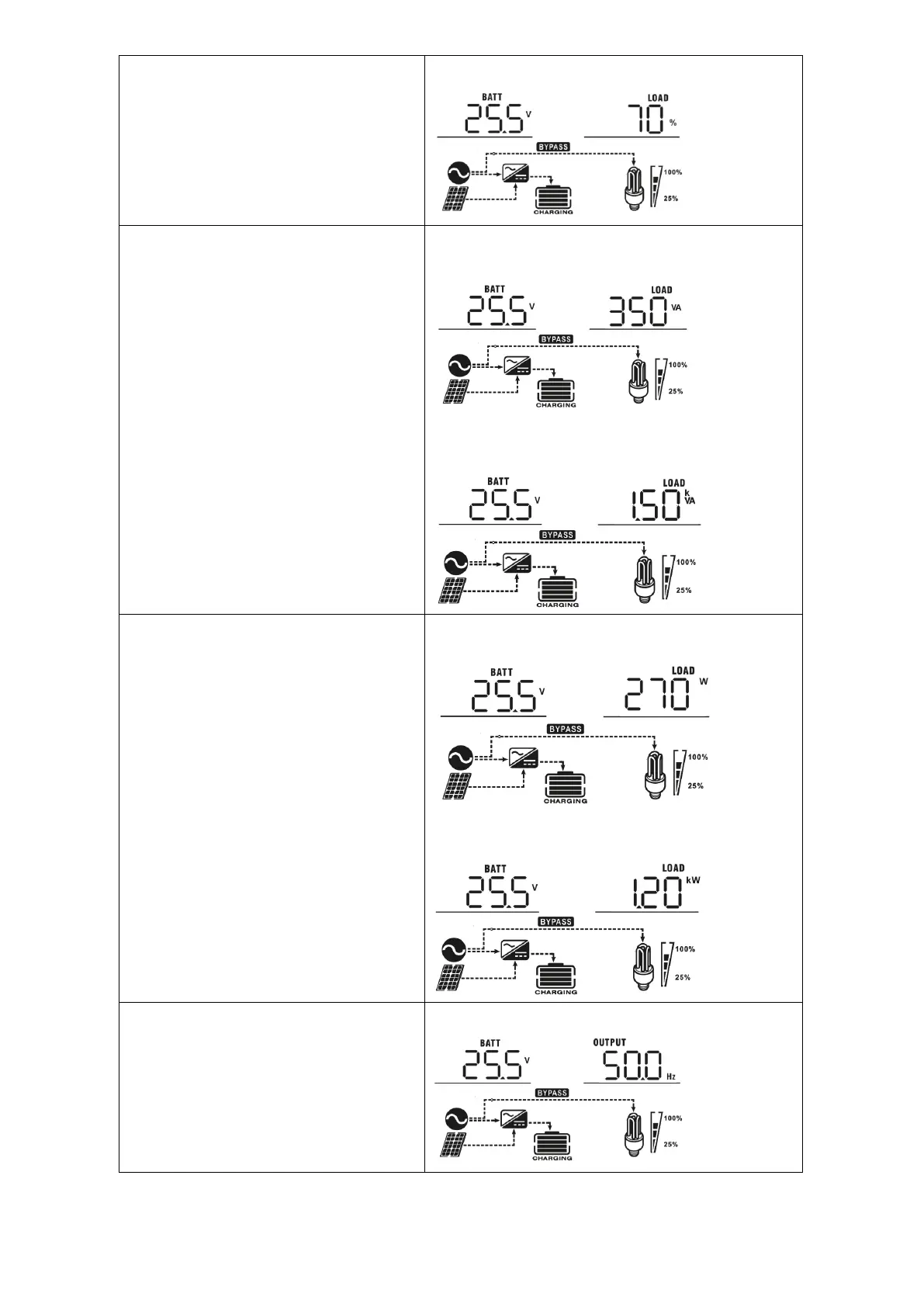 Battery voltage=25.5V, output frequency = 50.0Hz