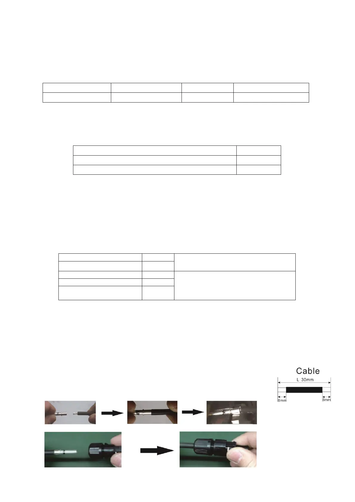module connection. To reduce risk of injury, please use the proper recommended cable size as below.