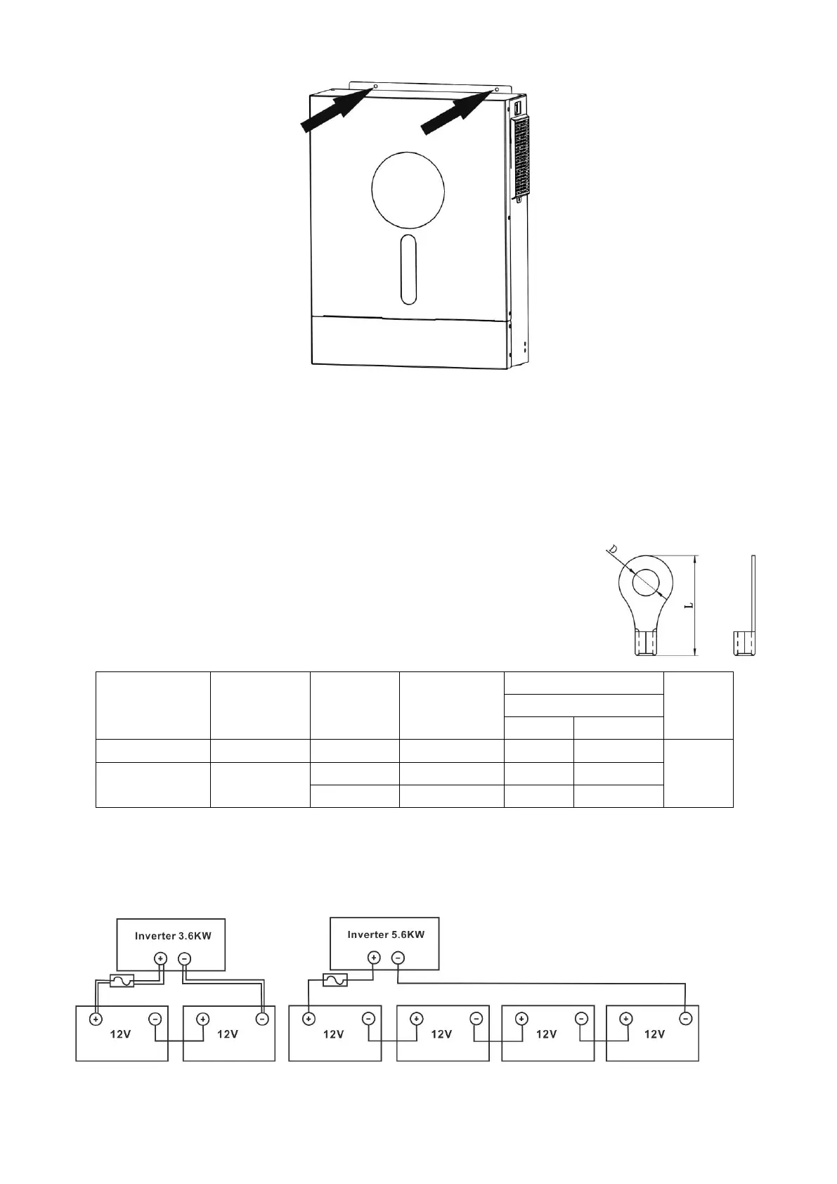 depending on cable size (refer to recommended cable size table). Apply ring terminals to your battery wires