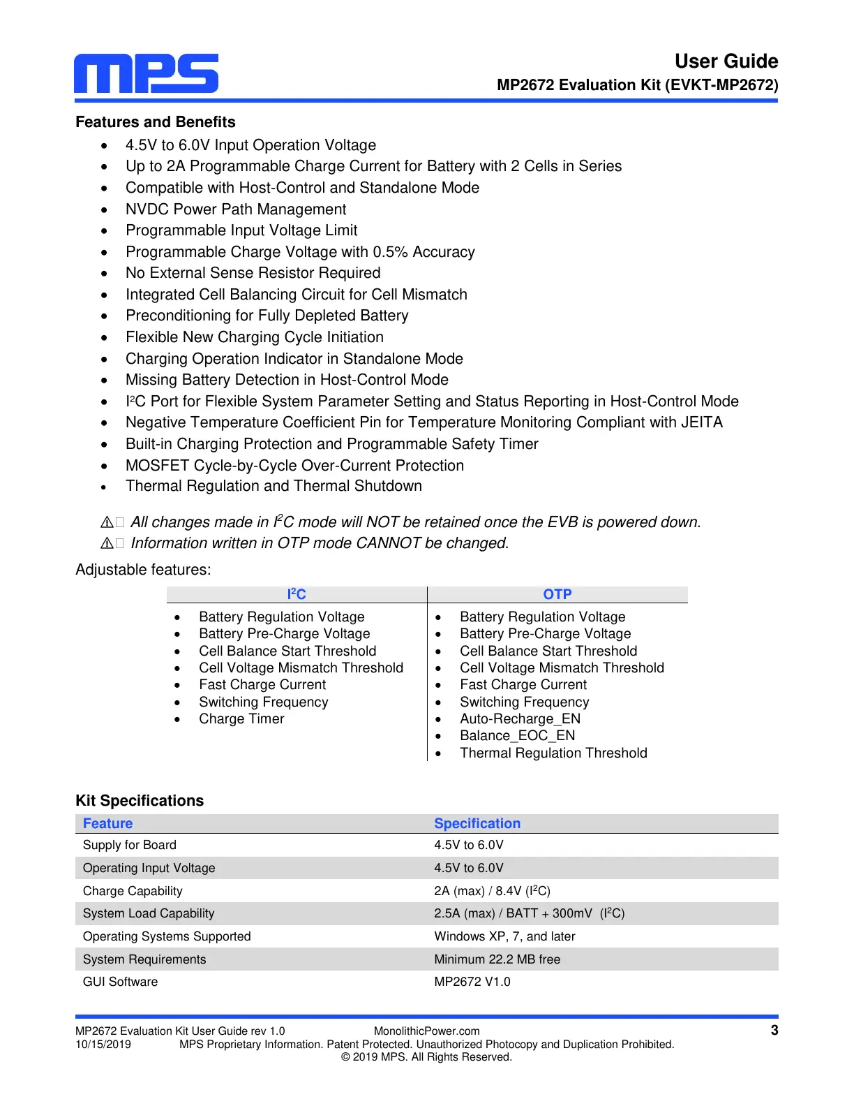 10/15/2019 MPS Proprietary Information. Patent Protected. Unauthorized Photocopy and Duplication Prohibited.