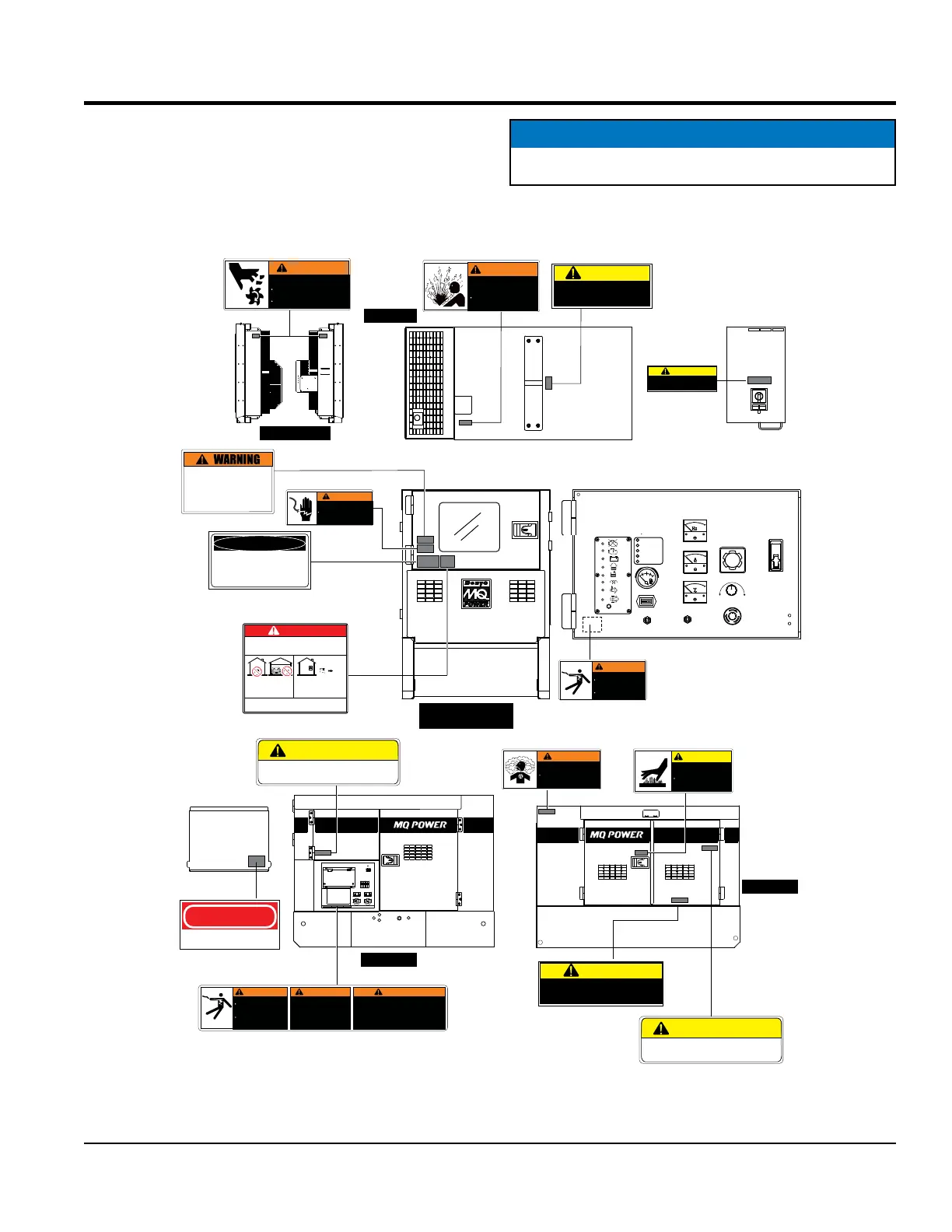 Safety labels are attached to the generator as shown in