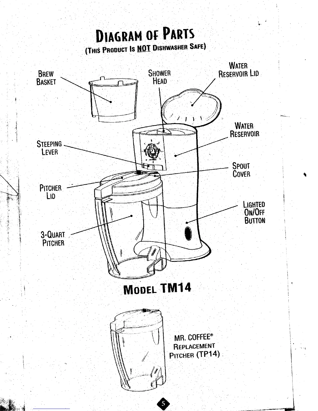 Mr Coffee Concepts Iced Tea Maker - Diagram of Parts