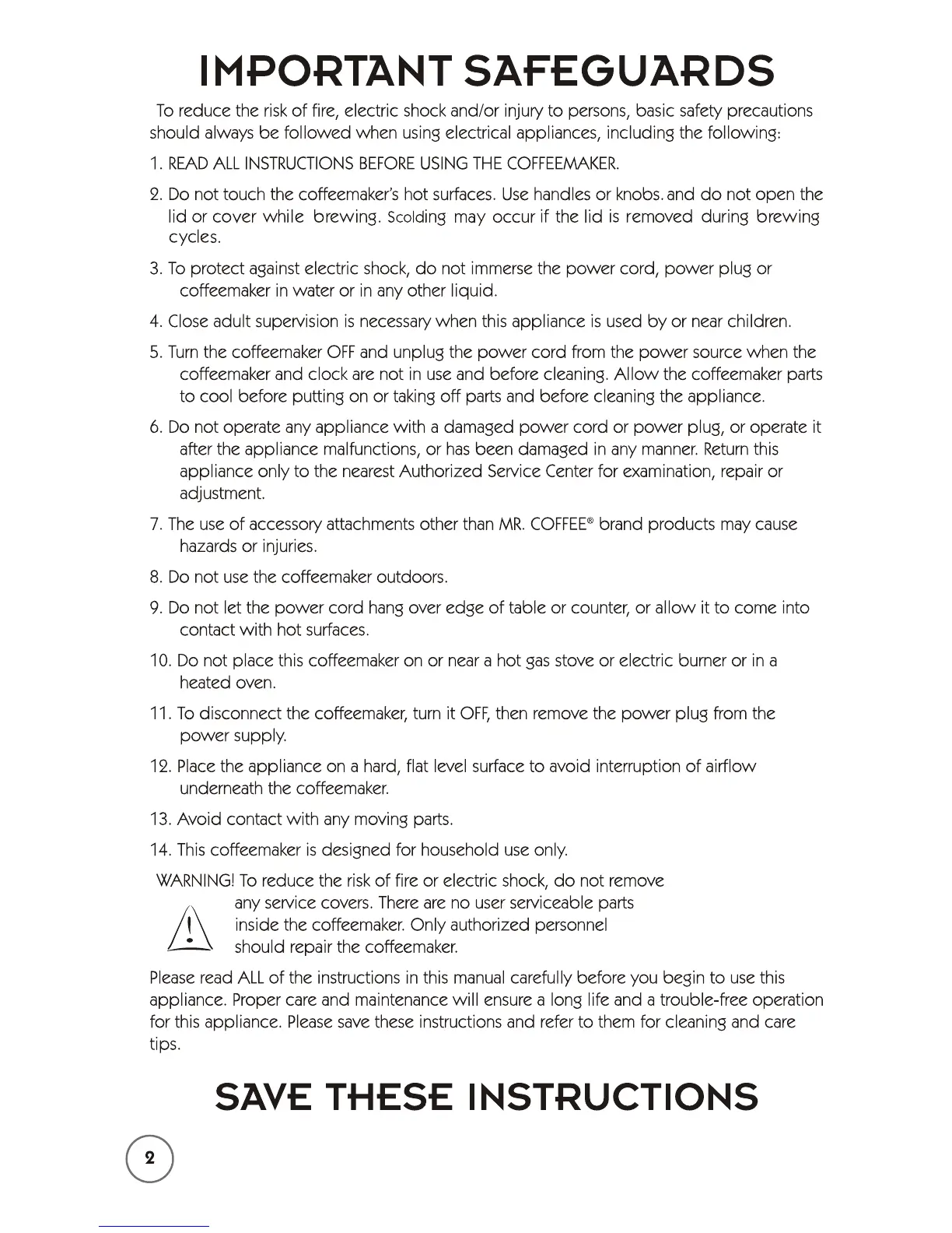 Mr. Coffee 115949 - IMPORTANT SAFEGUARDS