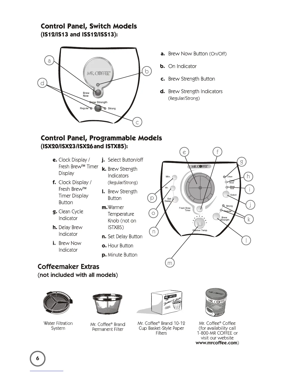 Mr. Coffee 115949 - Control Panel Overview; Control Panel, Switch Models; Control Panel, Programmable Models