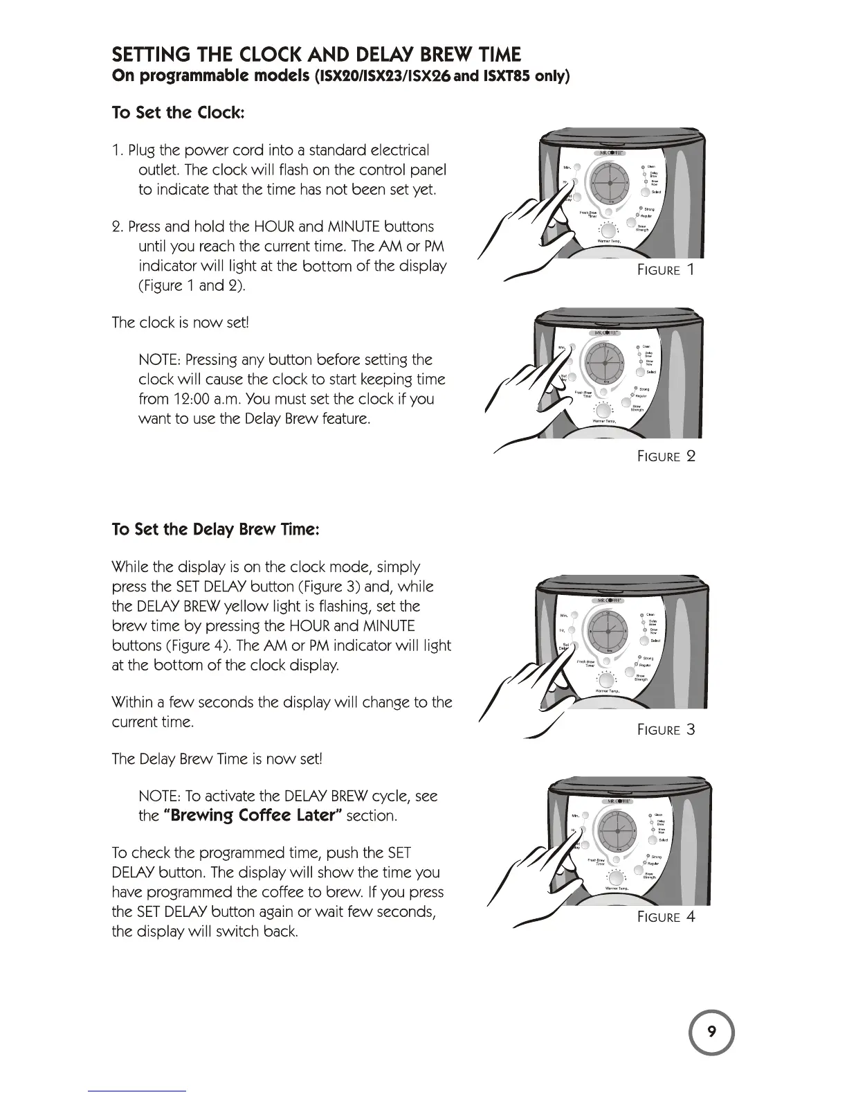 Mr. Coffee 115949 - SETTING THE CLOCK AND DELAY BREW TIME; To Set the Clock; To Set the Delay Brew Time